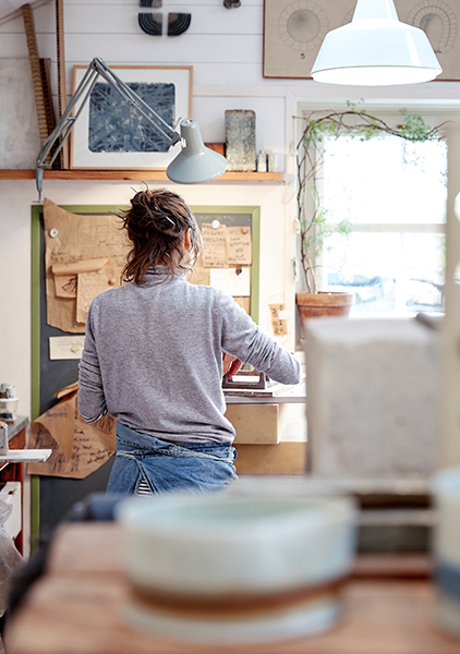 The kitchen garden outside is Thorup’s second passion and a green oasis where hands-on tasks allow her mind to wander and new ideas to take shape. On the other side of the garden, she has stores and ceramic kilns, and thus, the site combines function and flexibility, inspiration and reflection.